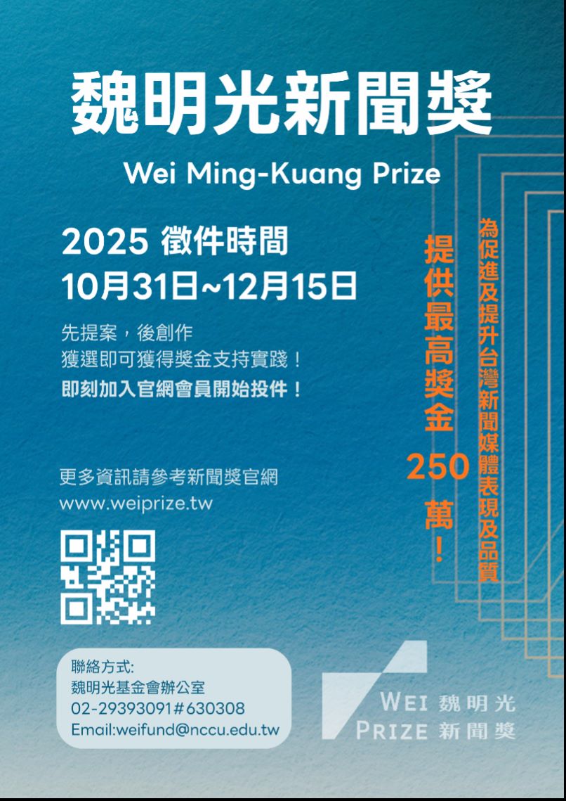 由「魏明光卓越發展基金」設立的 「魏明光新聞獎」,現已正式開放徵件。