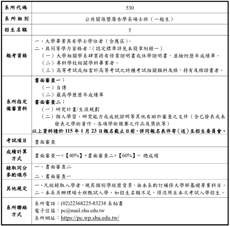 歡迎踴躍來電索取相關優惠推薦函及轉知有意願跨領域、跨科系學習的學生來就讀公廣系碩士班喔!
