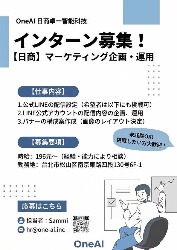 日本発のAIスタートアップ「OneAI」台湾支社で、マーケティングインターンを募集中です。